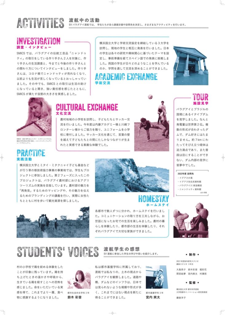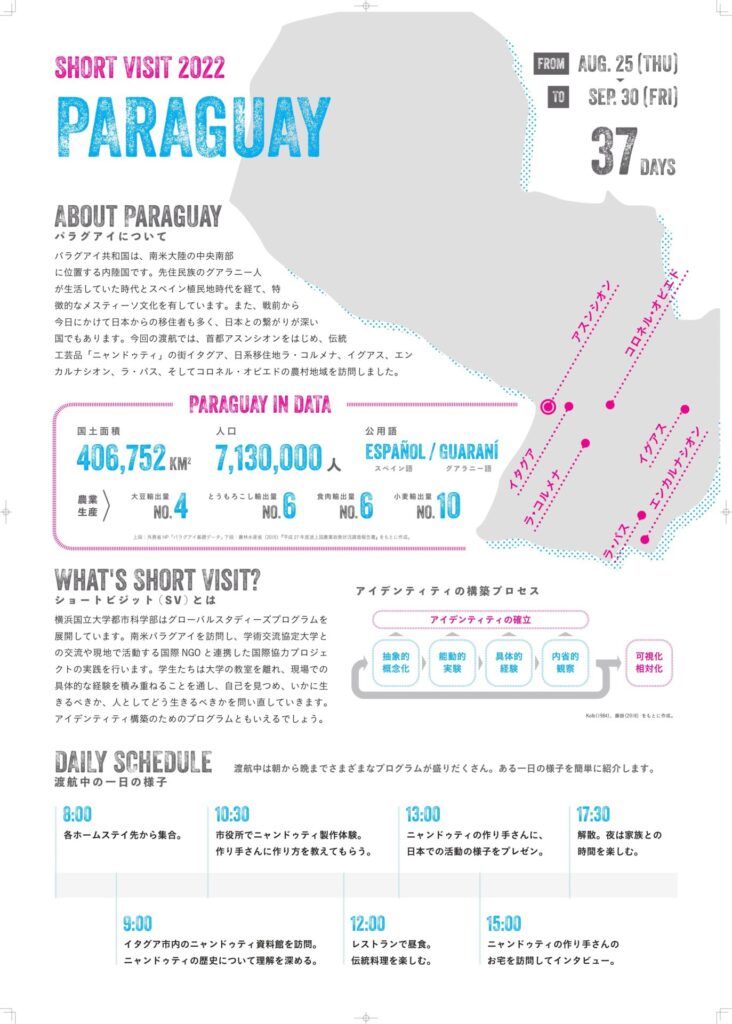 ゼミ・スタジオでは、国際協力や社会開発、他者支援や他者理解のあり方などについて学んでおり、そこでの学びを実践的に展開するために、ショート・ビジットプログラム・グローバル・スタディーズ・ツアーを実施しています。藤掛の研究実践フィールドでもあるパラグアイの他、ブラジルやボリビア等も含め、36日間滞在します。
